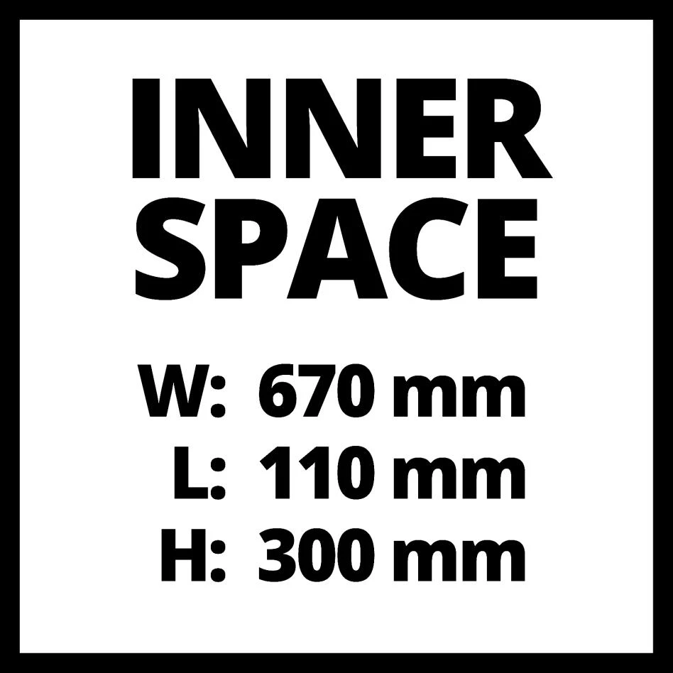 - Dimensions internes : 190 mm x 670 mm x 300 mm